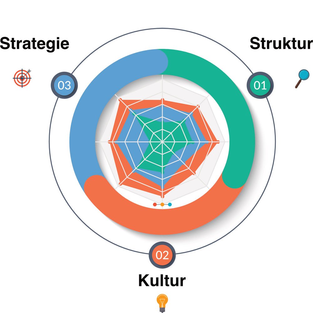 - Dies bedingt Neuerungen und Anpassungen auf der Ebene der Strategie, Struktur und Kultur.